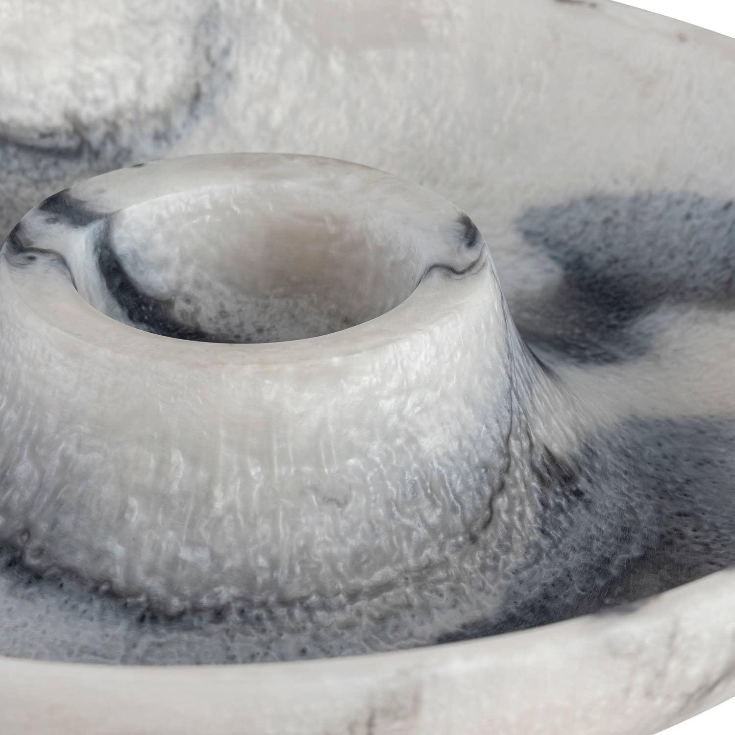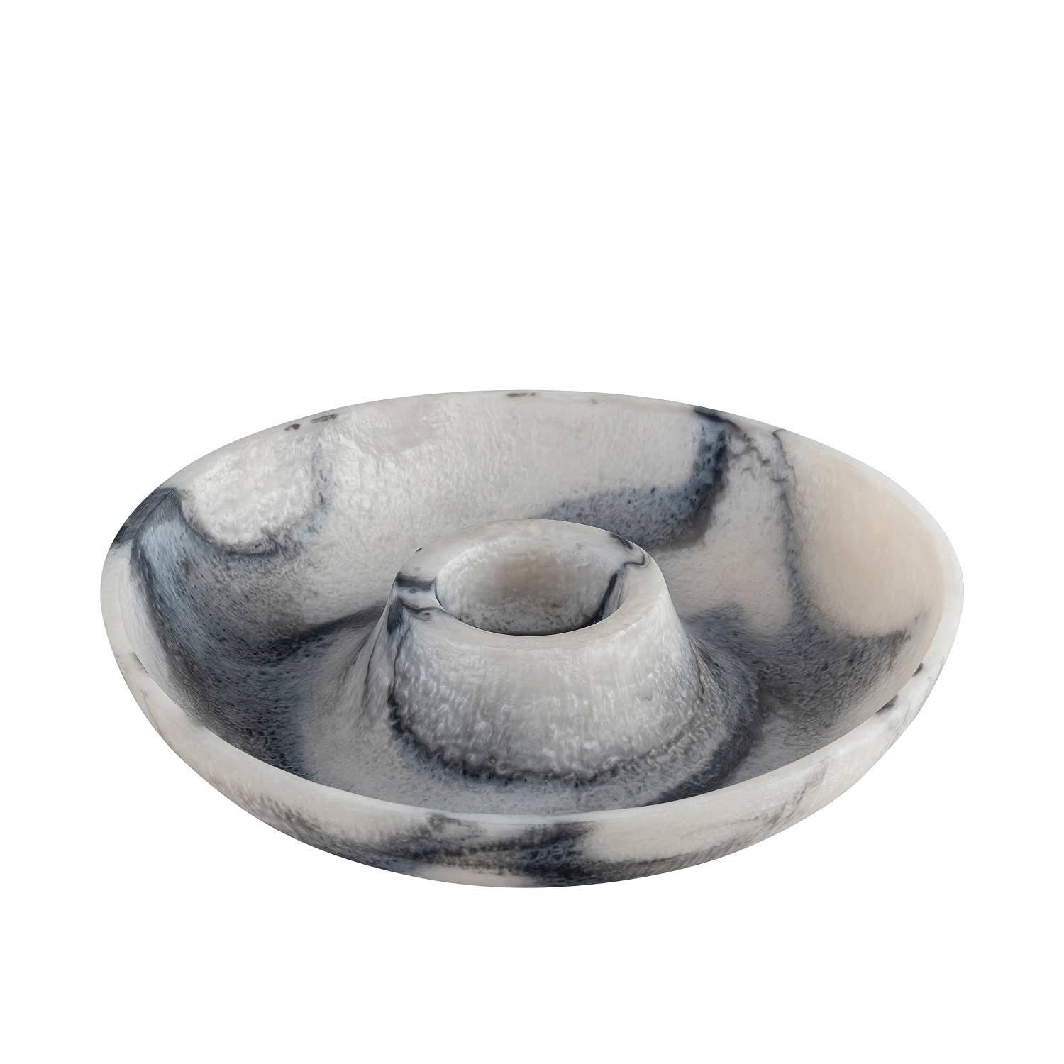 This Grey Resin Chip and Dip set combines modern design with practical functionality. Crafted from durable resin, the set features a smooth matte grey finish that adds a contemporary touch to any occasion. The divided design includes a spacious chip section and a central dip bowl, perfect for serving snacks at gatherings. Its sleek, minimalist look makes it a versatile and stylish addition to your entertaining essentials.; Indoor Only; Water Safe: Yes; Food Safe: Yes; Dishwater Safe: No
