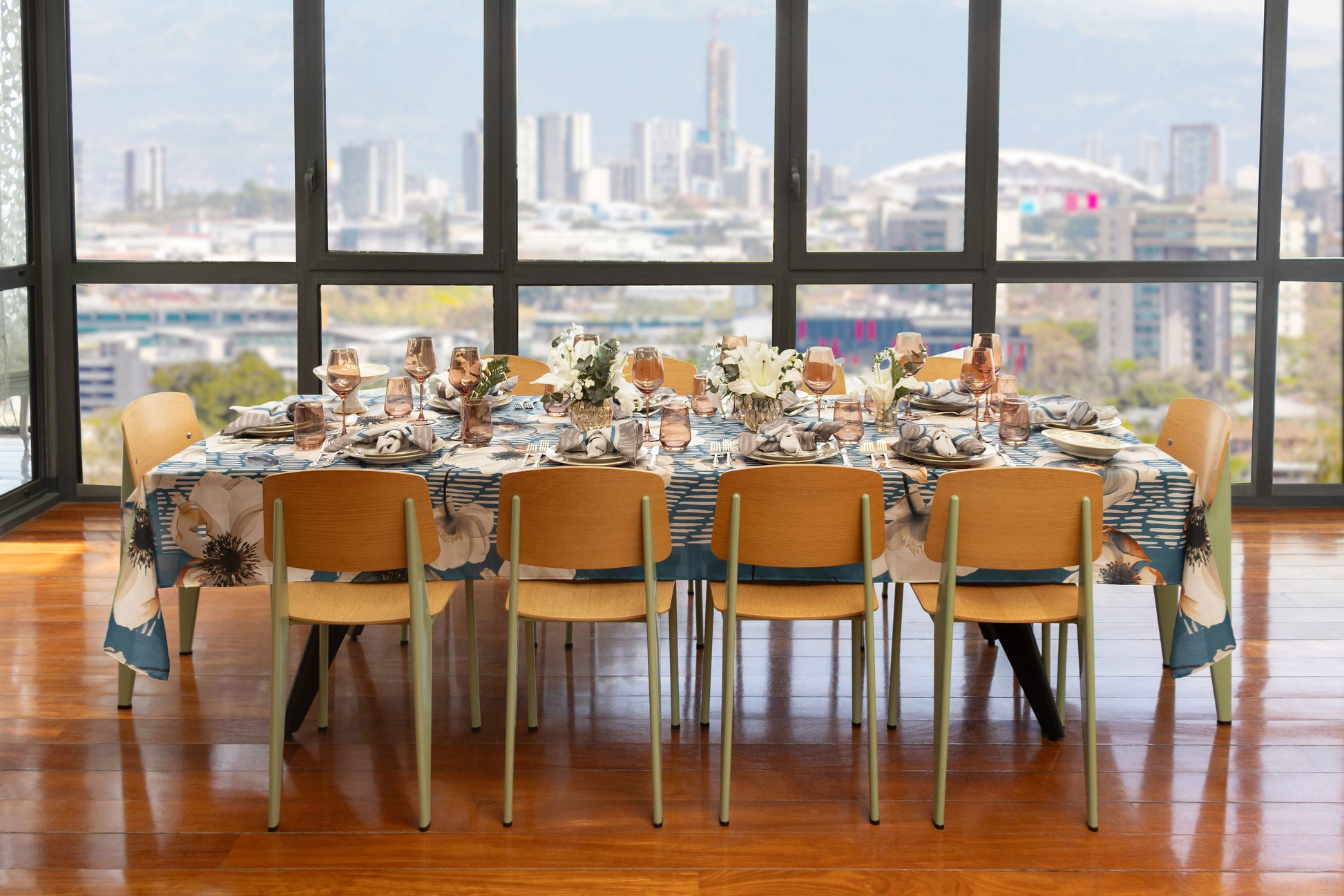 Set a table of understated beauty with Nude Bloom Easy-Care Tablecloth. Nude flowers on an elegant blue background exude sophistication with easy care. Perfect for any occasion, from casual meals to formal celebrations.