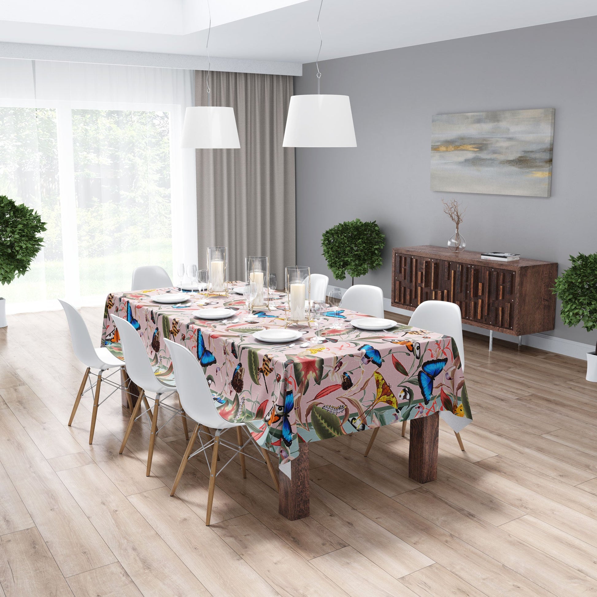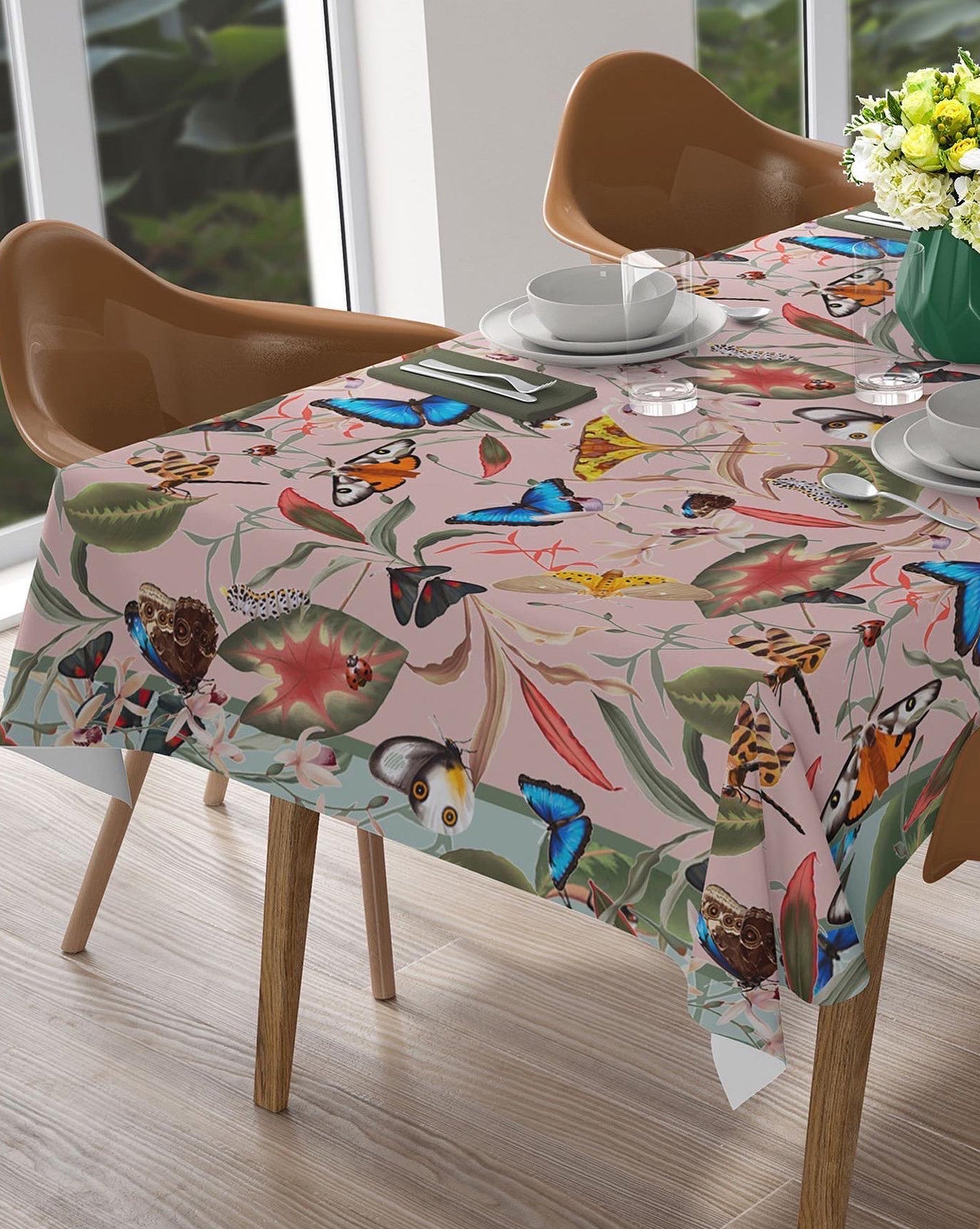Transform your table into a whimsical paradise with our Parpar Easy-Care Tablecloth. Adorned with fluttering butterflies and botanical leaves, it adds a touch of nature's charm to your dining experience. Crafted with meticulous attention to detail and easy care in mind, this tablecloth effortlessly elevates your meals, making every occasion a delightful celebration of beauty and enchantment.