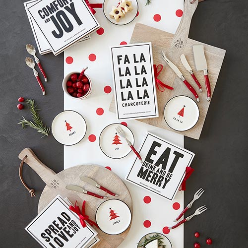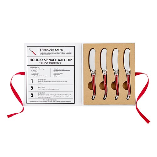 This set of red charcuterie spreaders, nestled in a chic book-shaped box, makes an ideal present for your holiday hostess. Includes a variety of recipes for both savory and sweet spreads.