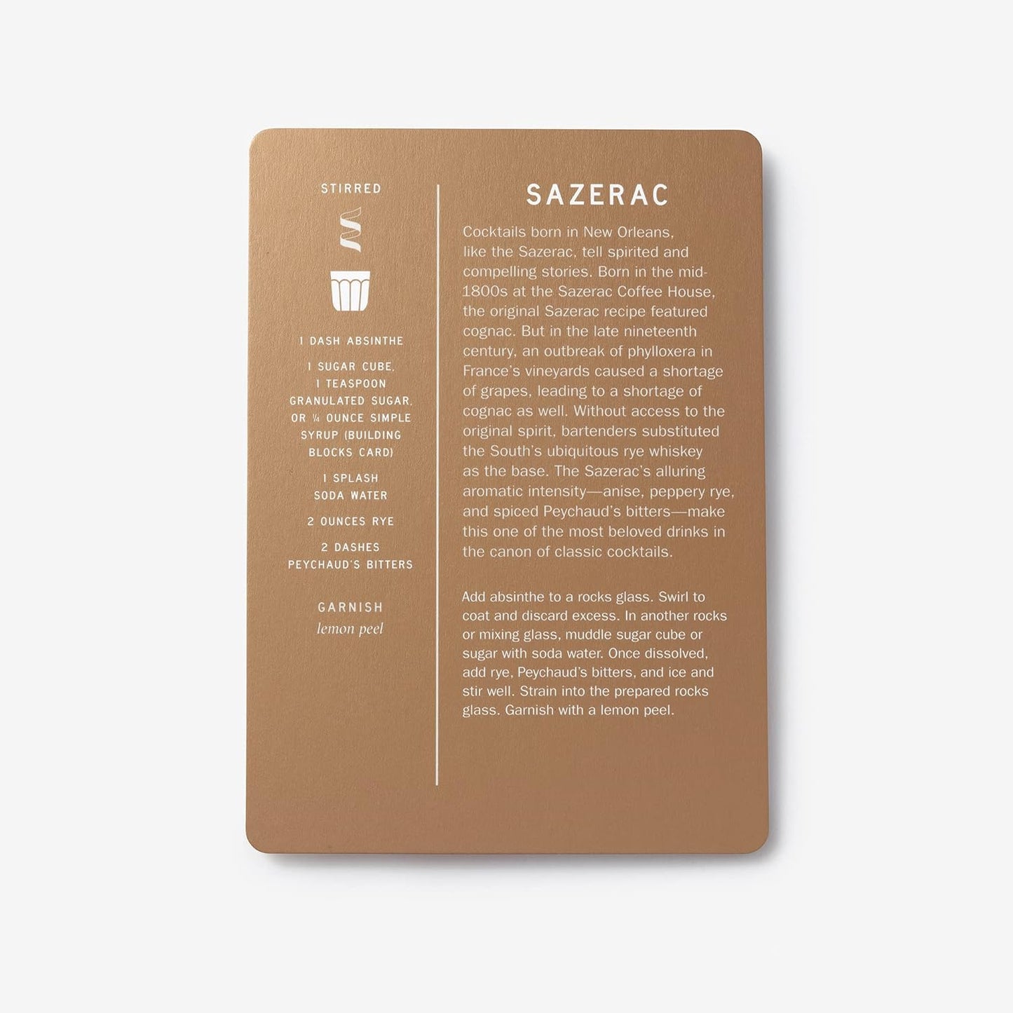No matter what card you pick, you'll be able to build, shake, or stir your drink with ease by following the step-by-step instructions on the back of the card and then comparing your finished cocktail to the photograph on the front. If you're rusty on techniques, simply consult the handy Basics card and you'll be shaking, stirring, straining, and swizzling your way to a new favorite cocktail in no time! Each card is laminated, making it easy to wipe each one clean after a round of cocktails. So just pick a recipe, pour, and enjoy.